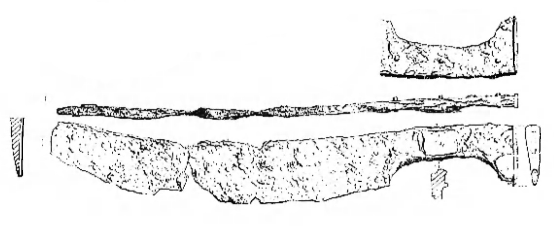Sekáč plátovaný bronzem z mohyly XIII v Mírkovicích, počátek 5. stol. př. Kr. (Podle Chytráčka.)
